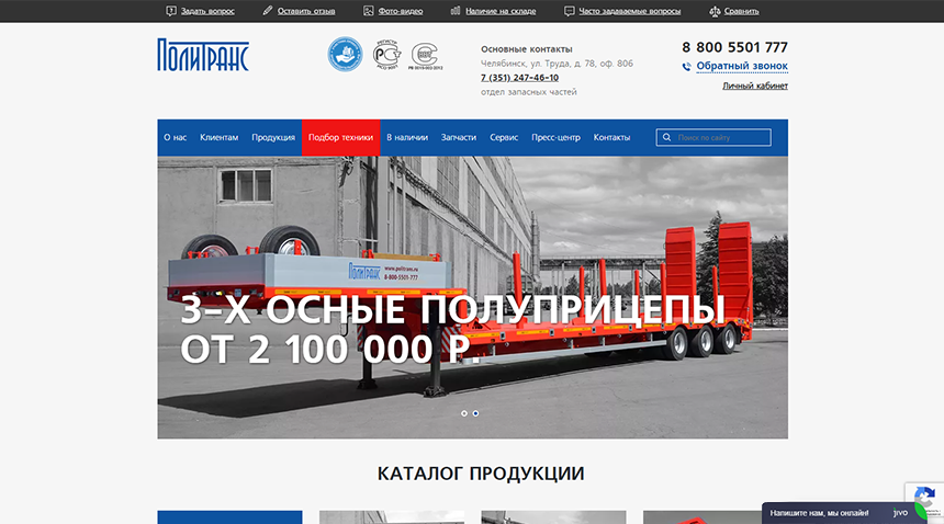 С компанией «Политранс» мы начали сотрудничество с момента модернизации сайта politrans.ru. Цифровой элемент принял участие в разработке нового сайта для компании.